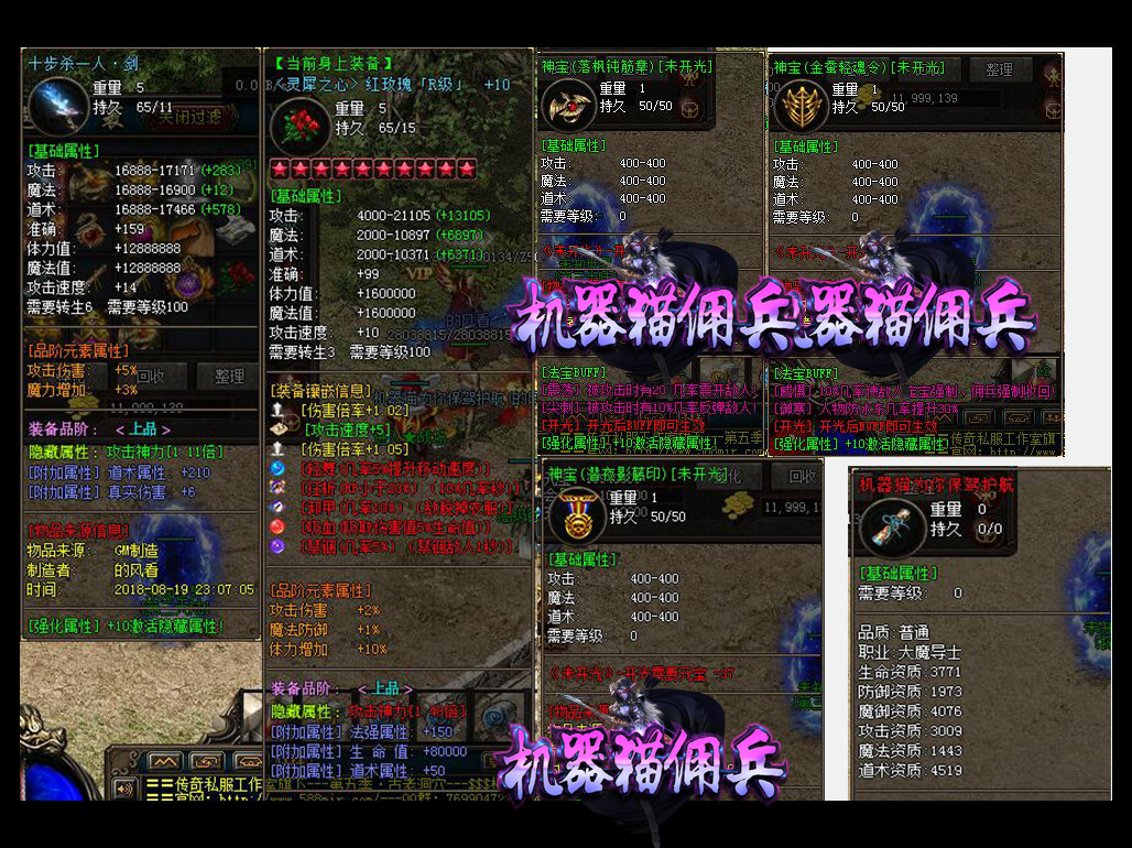 - 【机器猫佣兵】 散人有时间一样可以到终极,本服的装备是全爆的,BOSS全部掉落!花100当爷,一切靠打