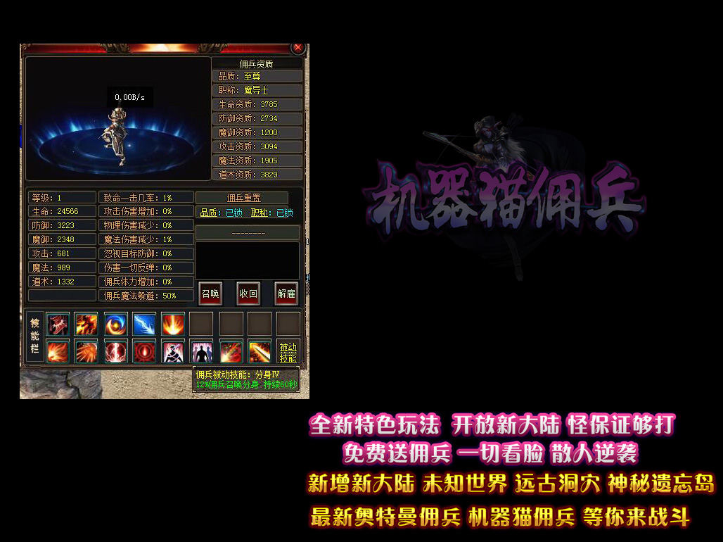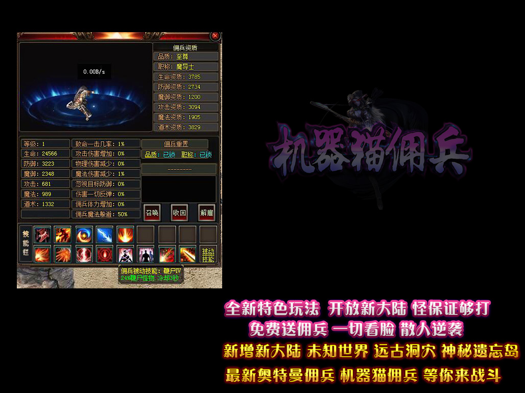 - 【机器猫佣兵】 独家暗黑鉴定系统,开放新古老洞穴,里面怪很凶!Q群:421317201